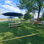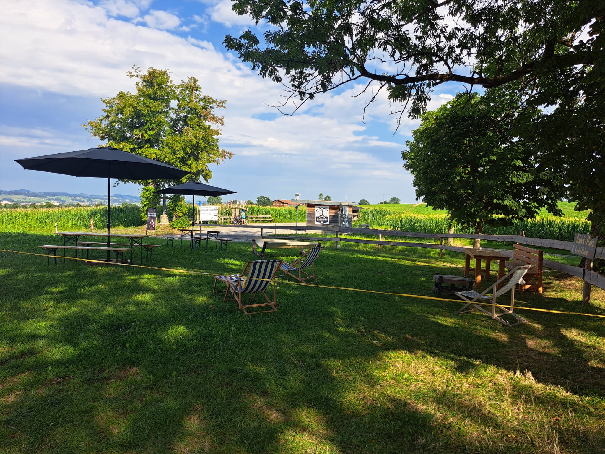 Auf den bereitgestellten Bänken vor der Milchbox und auf der gegenüberliegenden Straßenseite lässt sich das richtig genießen.