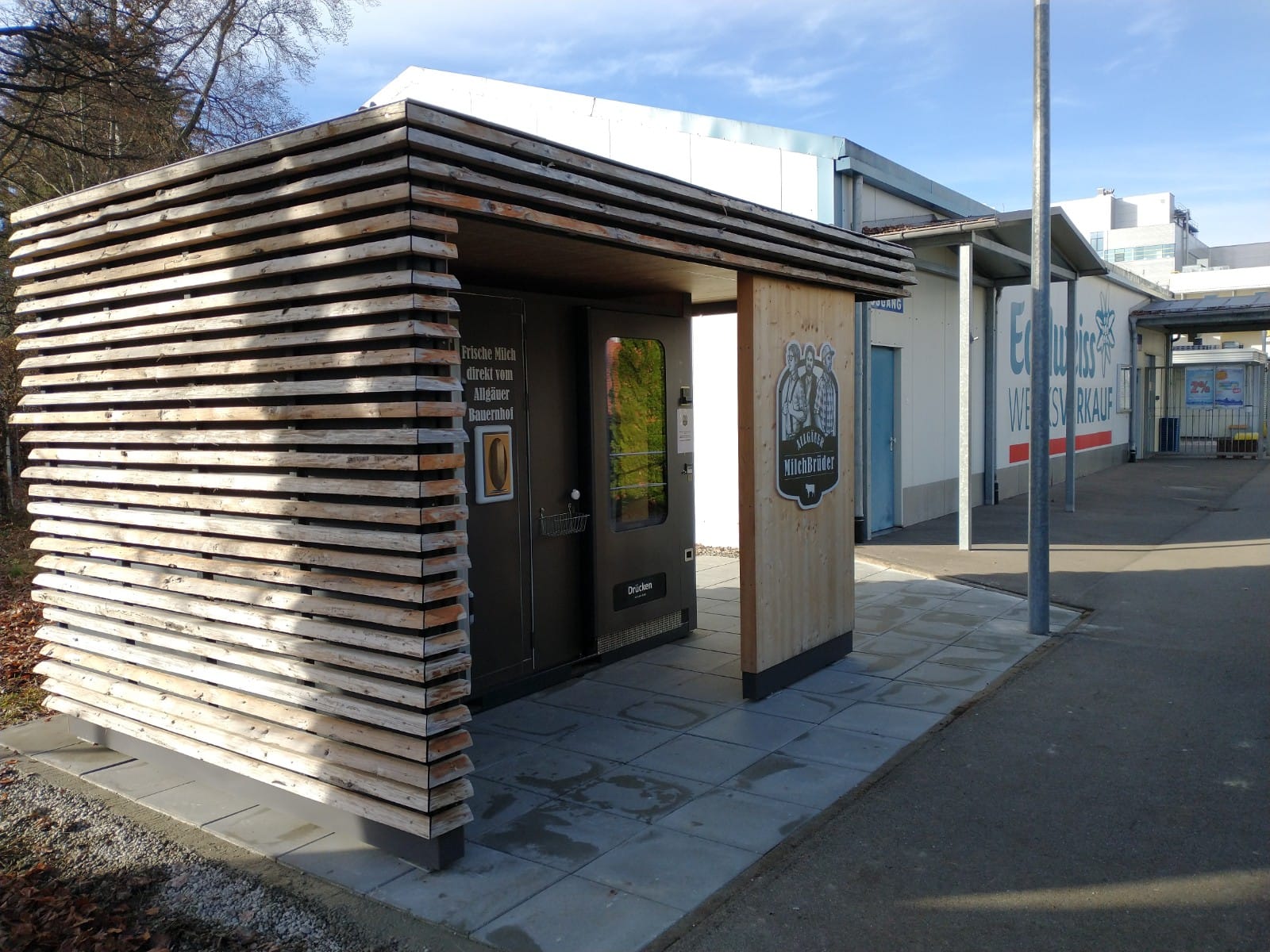 Unsere Milchbox in Leupolz ist für Sie täglich von 06 Uhr morgens bis 24 Uhr abends geöffnet. Unsere Milchboxen in Altusried und bei Edelweiß in Kempten sind rund um die Uhr geöffnet.