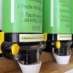 Flasche verschließen und schütteln bis sich das Pulver rückstandslos aufgelöst hat.